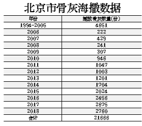 目前,以骨灰海葬、骨灰自然葬為代表的節(jié)地生態(tài)葬式已成為北京市骨灰安葬的主流。本市骨灰海葬活動(dòng)自1994年實(shí)施以來,迄今已順利組織了485次,播撒骨灰21666份,服務(wù)逝者家屬67887人次,僅2018年就組織骨灰撒?;顒?dòng)70批次,播撒骨灰2760份,參加活動(dòng)家屬11160人,在全國(guó)居于領(lǐng)先地位?!笆濉蹦?,骨灰海葬量預(yù)計(jì)將達(dá)到北京市年火化總量的4%。