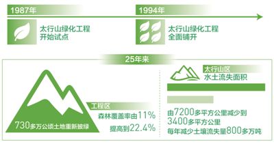 1987年,以改善生態(tài)、富山保川為目的,以加速綠化太行為重點(diǎn)的太行山綠化工程開始在40個(gè)縣試點(diǎn)。