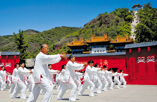 5月5日,北京平谷區(qū)劉家店鎮(zhèn)舉辦丫髻山第三十屆休閑文化廟會(huì),開展威風(fēng)鑼鼓、秧歌花會(huì)、百人太極等表演活動(dòng)和書法雅集、文創(chuàng)展示等文化活動(dòng),吸引大批來自京津冀地區(qū)的游人參加。圖為劉家店鎮(zhèn)的老年人在文化廟會(huì)上表演太極拳。新華社記者 李欣 攝
