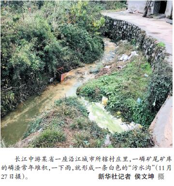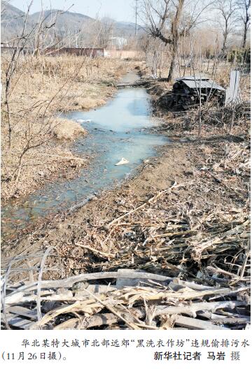 而在離城區(qū)稍遠(yuǎn)的農(nóng)村,部分不法村鎮(zhèn)小作坊等污水違規(guī)排放時有發(fā)生。檢查組發(fā)現(xiàn),長江中游某省一座沿江城市所轄村莊里,一磷礦尾礦庫的磷渣常年堆積,一下雨,就形成一條白色的“污水溝”。檢查組在華北某特大城市北部遠(yuǎn)郊一村中實地檢查時發(fā)現(xiàn),該村“黑洗衣作坊”違規(guī)偷排污水,污染環(huán)境。