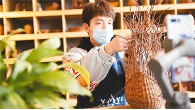 貴州省榕江縣大十字社區(qū)某科技公司工坊內(nèi),一名員工正在進(jìn)行網(wǎng)上蕨編技能培訓(xùn)。王炳真攝(人民圖片)
