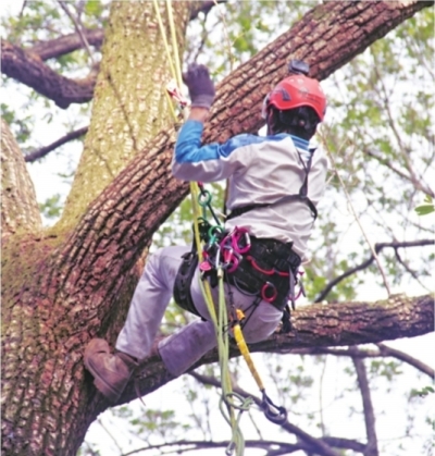“攀樹課”是學(xué)校休閑體育專業(yè)戶外運(yùn)動(dòng)方向必修課,開設(shè)于2016年。學(xué)生們要在教練的帶領(lǐng)下,分別采取單繩和雙繩技術(shù),對(duì)指定的大樹進(jìn)行攀爬。