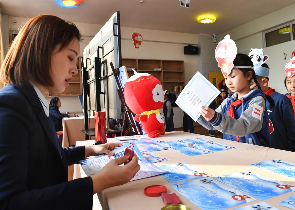 1月4日,在太原市新建路小學(xué),小學(xué)生們展示自己闖關(guān)答題的成績單。新華社記者 柴婷 攝