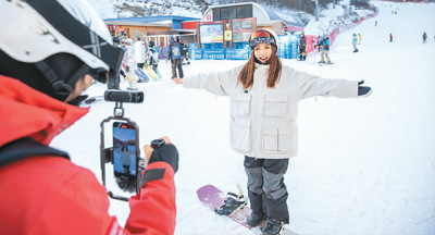 博主在河北崇禮云頂滑雪場(chǎng)錄制視頻。新華社記者 吳 壯攝