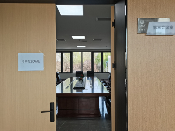“考研復(fù)試,請勿打擾。”因此,學(xué)校將會議室、辦公室、活動室等變身成“復(fù)試小屋”,配備上路由器、三腳架、電腦轉(zhuǎn)換接頭、接線板等設(shè)備,并掛上相應(yīng)的提示牌,還有師生志愿者進行現(xiàn)場服務(wù)。這樣的復(fù)試場所,不僅讓校內(nèi)學(xué)生享受到“貴賓待遇”,也得到了外??脊俚馁澷p。