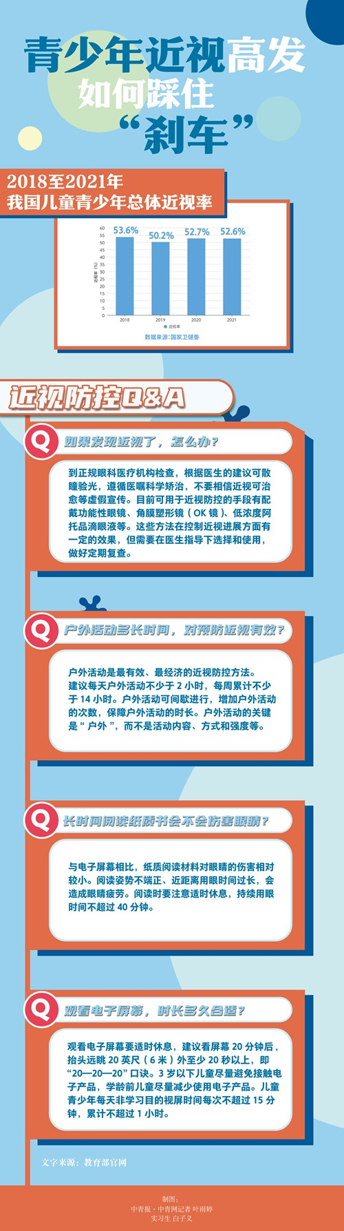 而在溫州醫(yī)科大學眼視光醫(yī)學部主任、教育部近視綜合防控專家宣講團團長瞿佳看來,從總體上說,我國近視防控的確取得了標志性的進展?!白钪匾木褪俏覀兊慕暵氏陆盗?,從2018年的53.6%到2021年的52.6%,下降了一個百分點?!薄捌鋵?,這幾年的疫情極大干擾了近視防控工作的正常進行?!宾募迅嬖V中青報·中青網(wǎng)記者,孩子們宅在家里上網(wǎng)課,活動少了,走到戶外也少了,電子產(chǎn)品的使用卻更多了,而家長對孩子近視管控的力度也不如學校。