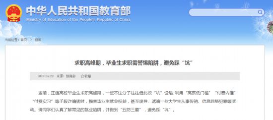教育部指出,求職中要提高防范意識,“五防”主動避開陷阱——