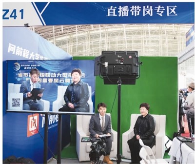 黑龍江省在哈爾濱市舉辦“省、市、縣三級聯(lián)動大型招聘活動暨第四屆春風(fēng)云聘會”,開展現(xiàn)場及線上招聘會500余場次。圖為工作人員在招聘會的直播帶崗專區(qū)直播。新華社記者 王建威攝
