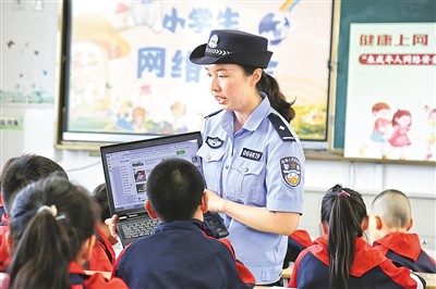 6月13日,江蘇省海安市公安局墩頭派出所民警走進轄區(qū)小學,開展未成年人預防網絡沉迷和網絡陷阱的安全教育,引導鄉(xiāng)村兒童樹立正確的上網觀,做到文明健康上網,增強網絡安全意識。周 強攝(人民視覺)