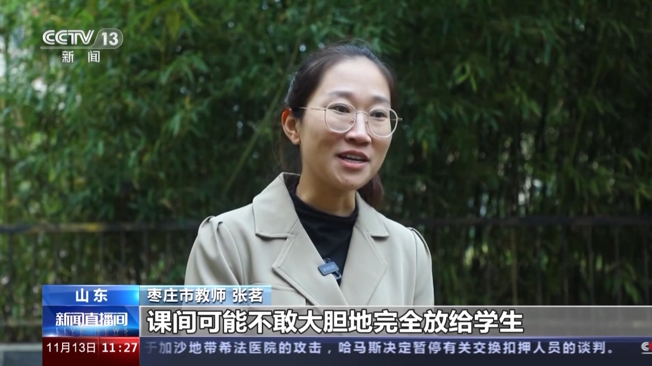 山東棗莊市教師 張茗:課間可能不敢大膽地完全放給學(xué)生,如果出現(xiàn)安全問(wèn)題,對(duì)孩子來(lái)說(shuō)是一種傷害。處理安全糾紛問(wèn)題的話,相對(duì)分散我們的教育教學(xué)精力,也給學(xué)校產(chǎn)生一些不好的影響。最重要的一個(gè)部分是溝通,社會(huì)認(rèn)同了,家長(zhǎng)認(rèn)可了,一定是我們開(kāi)展各項(xiàng)工作最堅(jiān)實(shí)的后盾。