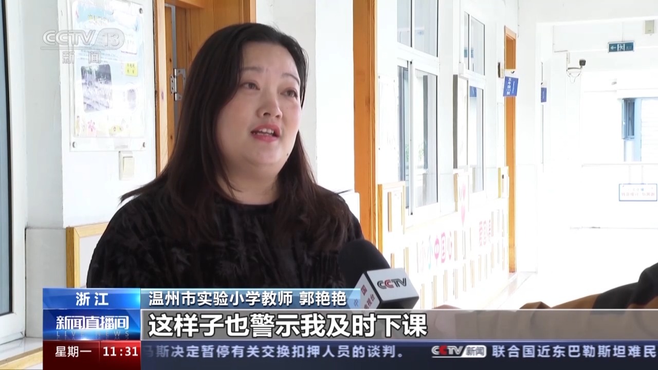 溫州市實(shí)驗(yàn)小學(xué)教師 郭艷艷:這個(gè)鈴聲是挺大的,我要是繼續(xù)上課的話,孩子們也不能夠很清楚地聽(tīng)到我的聲音,這樣也警示我及時(shí)下課。
