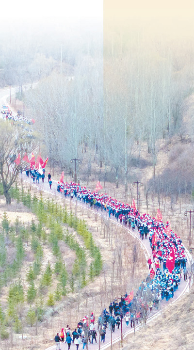 寧夏回族自治區(qū)固原市第二中學(xué)和弘文中學(xué)師生徒步前往彭陽(yáng)縣任山河烈士陵園,緬懷革命先烈。陳佳文攝