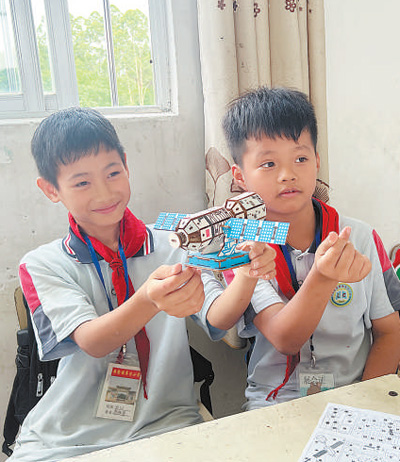 廣西壯族自治區(qū)貴港市平南縣廖村小學(xué)的學(xué)生在展示科普活動作品。廣西科技館供圖 河南固始縣鄉(xiāng)村科學(xué)課教師張建濤—— 在大別山北麓撒下科學(xué)的種子 人民日報記者 張文豪 “丁零零……”課堂鈴聲響起,河南省信陽市固始縣張廣廟鎮(zhèn)第一小學(xué)四年級二班的學(xué)生興奮起來。坐在后排的學(xué)生伸著腦袋,想看一下張老師又帶來了哪些新“道具”。 固始縣地處大別山北麓。85后張建濤是這所鄉(xiāng)村小學(xué)的科學(xué)課教師,也是孩子們眼中的“魔法師”。 課堂上,張建濤走到教室中間,從口袋中拿出一架紙飛機。隨手一甩,紙飛機在孩子們頭頂滑出優(yōu)美弧線,又準(zhǔn)確飛回他的手中?!巴郏 睂W(xué)生們瞪大眼睛發(fā)出驚嘆,課堂一下子熱鬧起來。 這只是暖場環(huán)節(jié)。只見張建濤擲出紙飛機,斜端著一個紙板、托著紙飛機一路小跑。紙飛機很“聽話”,穩(wěn)穩(wěn)地懸浮在紙板上。面對學(xué)生們的驚訝,張建濤順勢講解氣流的知識,并結(jié)合紙飛機講升力。學(xué)生們聽得津津有味。 這些小實驗背后是空氣動力學(xué)、斜坡氣流原理。“一張紙片、一個紙板,都可以成為科學(xué)課的教具?!睆埥f,“把深奧的科學(xué)知識,融入好玩的小實驗中,就會讓課堂兼具信息量與吸引力。” 做好科學(xué)課教師,并不容易。張建濤教齡不長,更非科班出身。為讓科學(xué)課堂變得豐富有趣,張建濤自學(xué)理論知識,借助網(wǎng)絡(luò)學(xué)習(xí)制作教具。通過一步步摸索,張建濤不斷優(yōu)化教學(xué)方式。“水火箭”“空氣炮”“無人機”……越來越多的科學(xué)實驗被他搬到課堂上,教學(xué)場所也不再局限于教室。 “為什么風(fēng)輪會轉(zhuǎn)動?”“為什么紙飛機可以轉(zhuǎn)彎?”“為什么‘水火箭’可以飛這么高?”……隨著實驗課的深入,學(xué)生不斷提出心中的疑惑,張建濤則在回答學(xué)生一個又一個的“為什么”中,傳遞科學(xué)知識。 這幾年,張建濤也會通過“走教”“送教”等方式,和周邊鄉(xiāng)鎮(zhèn)學(xué)校師生交流,推動科學(xué)課普及。他發(fā)現(xiàn),喜歡科學(xué)課的學(xué)生越來越多,科學(xué)課教師隊伍也在逐漸擴大。 “近年來,我們著力做好科學(xué)教育‘加法’,大力培育科學(xué)課教學(xué)隊伍?!惫淌伎h教育體育局副局長洪念國介紹,目前,全縣有科學(xué)學(xué)科專職教師66人,配備青少年科技輔導(dǎo)員217名、兼職教師286名,累計投入約1670萬元,為100多所學(xué)校提供實驗器材,完善實驗室建設(shè)。 張廣廟鎮(zhèn)第一小學(xué)科學(xué)實驗室內(nèi),擺放著各種瓶瓶罐罐,這都是師生們一起制作的實驗器材。“我想成為一名科學(xué)家”“我要成為一名宇航員”……孩子們用稚嫩的筆觸寫下寄語,用透明膠帶粘在飲料瓶上。這些瓶子將被制成“水火箭”,承載著孩子們的夢想,飛向廣闊的天空。一粒粒科學(xué)種子,正在大別山北麓生根發(fā)芽。 張建濤給科學(xué)實驗室取名“雛鷹”?!跋M谐蝗?,孩子們會像鷹一樣,帶著夢想,在藍天中自由翱翔?!睆埥f。 廣西開展科普大篷車活動—— 一場家門口的航天科普 人民日報記者 祝佳祺 “這是航天衛(wèi)星的兩翼,是安裝太陽能電池板的地方?!眮碜詮V西壯族自治區(qū)梧州市藤縣第五小學(xué)的三年級學(xué)生李杰峰驕傲地展示著親手組裝的模型,他希望將來能從事航天工作。 這是一場由中國科技館指導(dǎo),廣西科協(xié)主辦,廣西科技館、廣西科協(xié)團委、梧州市科協(xié)承辦,藤縣科協(xié)協(xié)辦的“小村莊的太空夢”科普大篷車系列活動。在藤縣中和陶瓷交易中心展館教室內(nèi),當(dāng)?shù)貙W(xué)生正在科技輔導(dǎo)員指導(dǎo)下組裝航天模型。 除此之外,流動科技館科普展教、航天科普講座、3D科學(xué)家精神電影展播等科普大篷車系列活動,也吸引了不少師生前來參加。 “異形齒輪”“視錯覺鐘”“魔鏡”“磁阻尼”……數(shù)十項科普展教模塊前,孩子們按照提示操作,親身體驗科學(xué)的奇妙,再通過閱讀模塊展板上通俗易懂的說明,獲取科學(xué)知識。 “戴上眼鏡看電影,就像自己在翱翔,感覺很神奇?!庇^看3D電影給藤縣第五小學(xué)的陳亦然留下了深刻印象。 “3D電影不算新技術(shù),但鄉(xiāng)村的很多孩子都沒接觸過。于是,我們研發(fā)了可攜帶的3D電影放映設(shè)備,把3D電影送下鄉(xiāng),受到了廣泛歡迎?!睆V西科技館展品資源管理部主管王書林說。 2020年,中國科技館聯(lián)合廣西、云南等地發(fā)起“小村莊的太空夢”科普大篷車活動。近4年間,“小村莊的太空夢”活動已走進百色、桂林、河池、梧州、貴港、南寧等地。 藤縣的活動結(jié)束后,科普團隊一路向西來到了貴港市平南縣?!摆ね跣翘×?,已經(jīng)退出了太陽系的‘行星圈’?!逼侥峡h鎮(zhèn)隆鎮(zhèn)廖村小學(xué)的教室內(nèi),中國航天科普大使、中國科學(xué)院國家空間科學(xué)中心研究員劉勇正繪聲繪色地講解天文知識。臺下,小學(xué)生們坐得筆直,聚精會神地聽著。 “劉老師講的內(nèi)容有趣易懂,讓我收獲很大。”廖村小學(xué)四年級學(xué)生楊文華說,“我們平時很難有機會接觸這么專業(yè)的老師?!?/p> “鄉(xiāng)村的天文科普教育較為薄弱,優(yōu)質(zhì)師資更是稀缺。