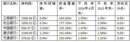 截至2016年6月末,五大行的不良率均較2015年末有所上升。