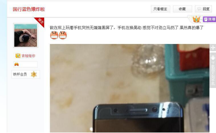 中國網(wǎng)友“吉娃娃你”的貼吧發(fā)言截圖。 9月17日凌晨,中國網(wǎng)友“吉娃娃你”在百度note7貼吧發(fā)帖稱自己購買的中國版Note7出現(xiàn)了電池爆炸事故,這也是中國版Note7首次傳出爆炸事故。這使得在全球炒得沸沸揚揚的三星Note7“炸機門”事件在中國“炸了鍋”。