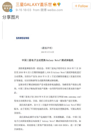 | 三星在中國政策終改變 改口宣布召回部分Note 7 |