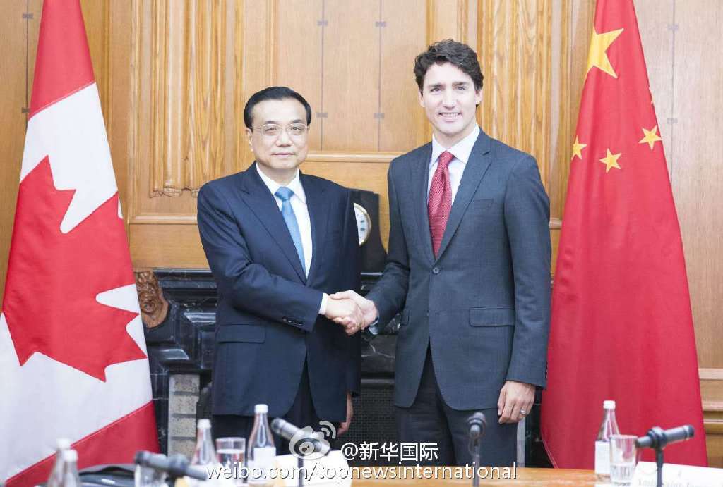 新華網(wǎng)北京9月23日電 當(dāng)?shù)貢r(shí)間22日,李克強(qiáng)總理與加拿大總理特魯多舉行會(huì)談,確認(rèn)正式啟動(dòng)中加總理年度對(duì)話機(jī)制。會(huì)談中,兩國(guó)總理就中加關(guān)系和共同關(guān)心的地區(qū)國(guó)際問(wèn)題進(jìn)行了廣泛深入的交談。這是李克強(qiáng)和特魯多在不到一個(gè)月時(shí)間里第二次會(huì)晤。特魯多本月初剛剛訪華。(據(jù)新華社“新華國(guó)際”微博報(bào)道)