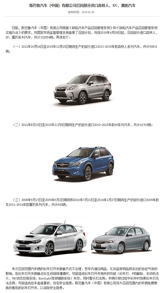 分車系來(lái)看,3月,德系和日系累計(jì)召回汽車數(shù)量占召回總量多達(dá)99.27%。其中,德系共4個(gè)品牌累計(jì)召回汽車177173輛,占召回總量的56.05%,數(shù)量最多;日系共2個(gè)品牌累計(jì)召回汽車136597輛,占比43.22%;此外,英國(guó)、意大利、美國(guó)各有一品牌發(fā)布了召回公告,但三車系總共召回?cái)?shù)量不足總量的1%。值得注意的是,繼2月之后,3月仍無(wú)自主品牌發(fā)布召回信息。 從召回原因來(lái)看,本月斯巴魯涉及132954輛汽車的召回不僅數(shù)量最大,召回原因也頗具“創(chuàng)意”。該批車輛因剎車燈開(kāi)關(guān)接觸方式不合理,受車內(nèi)清掃用品、化妝品等物品揮發(fā)出的含硅氣體的影響,在剎車燈開(kāi)關(guān)接觸點(diǎn)處生成絕緣薄膜時(shí),可能造成剎車燈開(kāi)關(guān)相關(guān)的功能(剎車燈、P檔解除、發(fā)動(dòng)機(jī)點(diǎn)火、VDC動(dòng)態(tài)控制系統(tǒng)、EyeSight駕駛輔助系統(tǒng))失效,同時(shí)警示燈點(diǎn)亮;車輛行駛過(guò)程中剎車時(shí)如果剎車燈無(wú)法點(diǎn)亮,可能造成后車追尾事故,存在安全隱患。