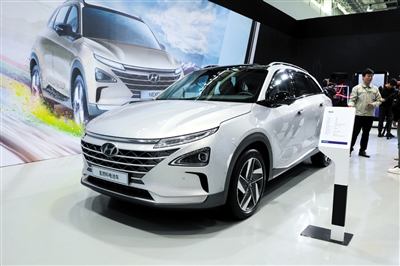 去年10月,現(xiàn)代汽車就在中國展出了氫燃料電池汽車現(xiàn)代NEXO。新京報記者 孫曉萌 攝