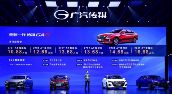 8月23日,全新一代傳祺GA6在成都正式上市。全新一代傳祺GA6帶來了6個(gè)版本,提供赤焰紅、冰海藍(lán)、珠光白、鈦金色、典雅黑、星光銀等6種顏色,售價(jià)為10.88萬元-16.88萬元,另有6大尊享政策:凡在10月31日前購(gòu)買新車,可享受1萬元起首付、至高1萬元貼息、至高5000元置換補(bǔ)貼、5年免費(fèi)無限流量,以及3年10萬公里質(zhì)保+贈(zèng)送2年5萬公里延保,首任車主還享受8年免費(fèi)代步車服務(wù)+免費(fèi)道路救援。