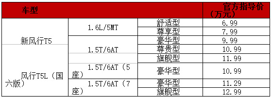 8月18日,東風風行宣布面向全新市場定位的戰(zhàn)略車型——“加大號智惠5座SUV”新風行T5正式上市。包括此前預售款型在內,新風行T5共有1.5T/6AT/1.6L/5MT兩種動力選擇、五款車型,售價從6.99萬元到11.99萬元,全面覆蓋入門級緊湊型SUV市場區(qū)間。同時上市的還有風行T5L(國六版)的三款車型,分為5座版和7座版,動力均為1.5T/6AT,售價從10.99萬元到12.99萬元。