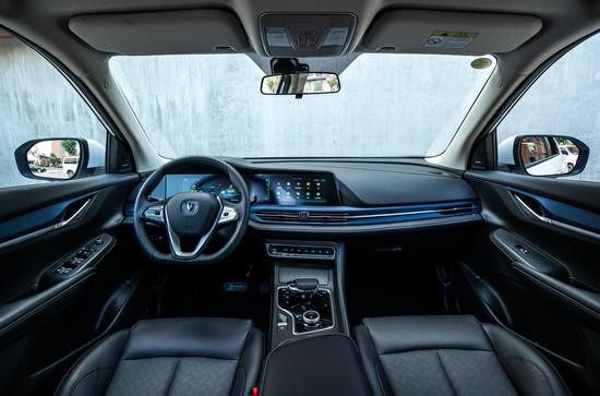 內(nèi)飾方面,長安新能源CS55純電版搭載了10.25寸雙聯(lián)大屏設(shè)計,支持AI小安、在線娛樂、車載微信、手機無線充電、索尼音響、四路環(huán)視行車記錄儀以及遠程控制等功能。車門把手、貫穿式空調(diào)出風(fēng)口等處都加入了藍色元素裝飾,用以展示其新能源車身份。在用料上,新車使用了能明顯提高檔次的軟質(zhì)材料、皮質(zhì)包覆和鋼琴漆飾板,為用戶帶來全新豪華智慧出行體驗。
