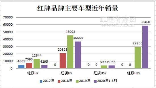 紅旗品牌主要車(chē)型近年銷(xiāo)量