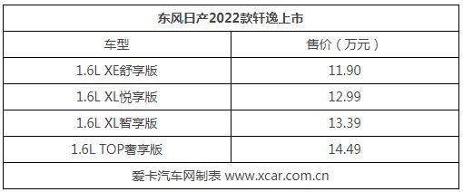 現(xiàn)款在售的軒逸為第14代車型,2022款軒逸延續(xù)了現(xiàn)款設(shè)計(jì)的同時(shí),針對(duì)配置進(jìn)行調(diào)整,頂配車型的售價(jià)也由14.3萬元調(diào)整至14.49萬元,價(jià)格上調(diào)了1900元。