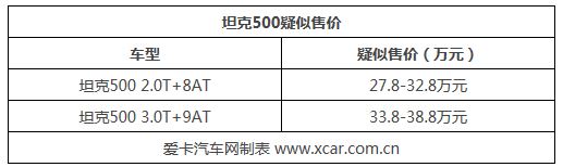| 坦克500疑似售價(jià)曝光 售27.8-38.8萬元 |