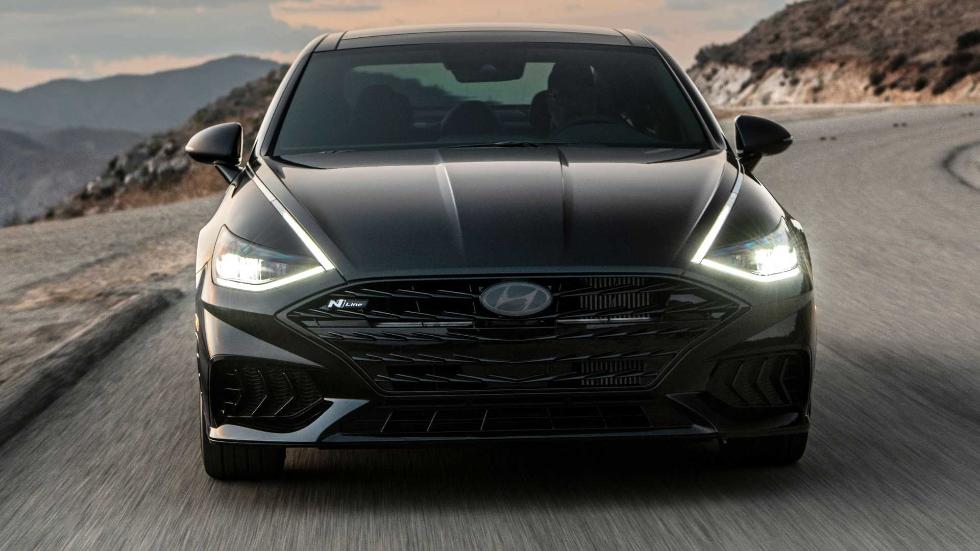 外觀方面,索納塔N Line采用官方稱之為“Sensuous Sportiness感性運(yùn)動設(shè)計理念”,該設(shè)計源自Le Fil Rouge概念車。前臉部分,寬大的格柵向兩側(cè)延伸且引擎蓋日間行車燈也使得新車前臉擁有較高的辨識度。值得一提的是,新車對格柵、車標(biāo),以及前唇進(jìn)行熏黑處理,視覺感受更加凌厲。