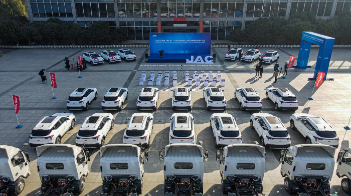 江淮汽車出口挪威500臺(tái)e-JS4暨法國西班牙100臺(tái)電動(dòng)輕卡發(fā)車儀式