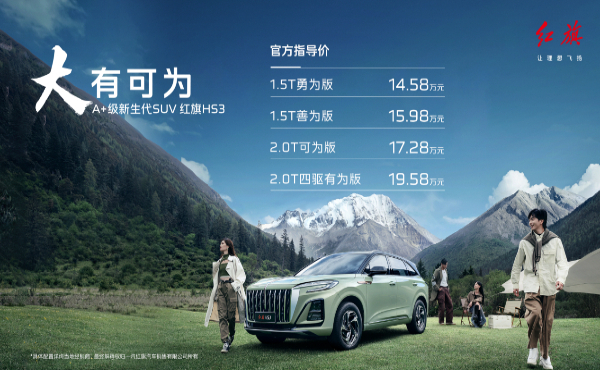 7月17日,“大有可為——紅旗HS3上市發(fā)布會(huì)暨2023紅旗粉絲盛典”在長(zhǎng)春舉行。紅旗品牌代言人演員靳東、奧運(yùn)冠軍武大靖等來(lái)自五湖四海的紅旗用戶(hù)、紅旗粉絲齊聚北國(guó)春城,共同慶祝屬于紅旗大家庭的盛大節(jié)日?;顒?dòng)現(xiàn)場(chǎng),中國(guó)第一汽車(chē)集團(tuán)有限公司總經(jīng)理邱現(xiàn)東宣布紅旗HS3正式上市,官方指導(dǎo)價(jià)為14.58萬(wàn)元~19.58萬(wàn)元。