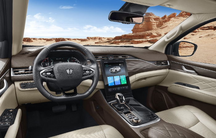 新車選用融合中國元素充滿力量感和品質感的全新LOGO,將東方雅致與西方流線型設計相融,具有強烈的視覺沖擊力;車頭的寬闊前臉搭配熏黑中網的蜂窩設計讓整車極具辨識度;車身尺寸方面,新車的長、寬、高分別為4882mm、1850mm、1875mm,軸距為2850mm。