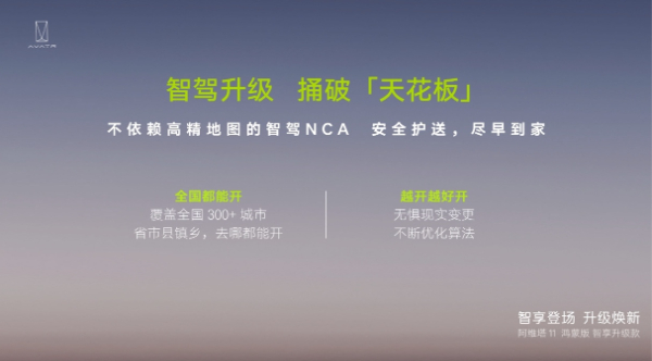 伴隨著阿維塔11鴻蒙版智享升級款的上市,阿維塔“去高精地圖化”智駕時代正式開啟,打破“按圖索驥”束縛,完美彌補(bǔ)當(dāng)下高精地圖智駕方案的不足并解鎖更多高頻智駕場景,城區(qū)NCA智駕功能即將一次性解鎖超過300個城市,帶來“全國都能開、 全國都好開”的出行體驗(yàn)。