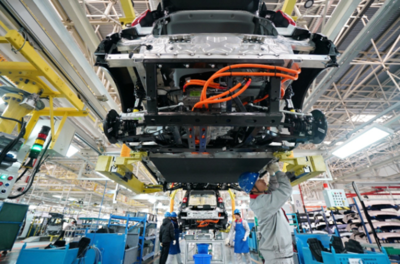 奇瑞新能源汽車(chē)股份有限公司石家莊分公司的工人在總裝車(chē)間生產(chǎn)線(xiàn)上工作(資料圖片 新華社記者 牟宇 攝)