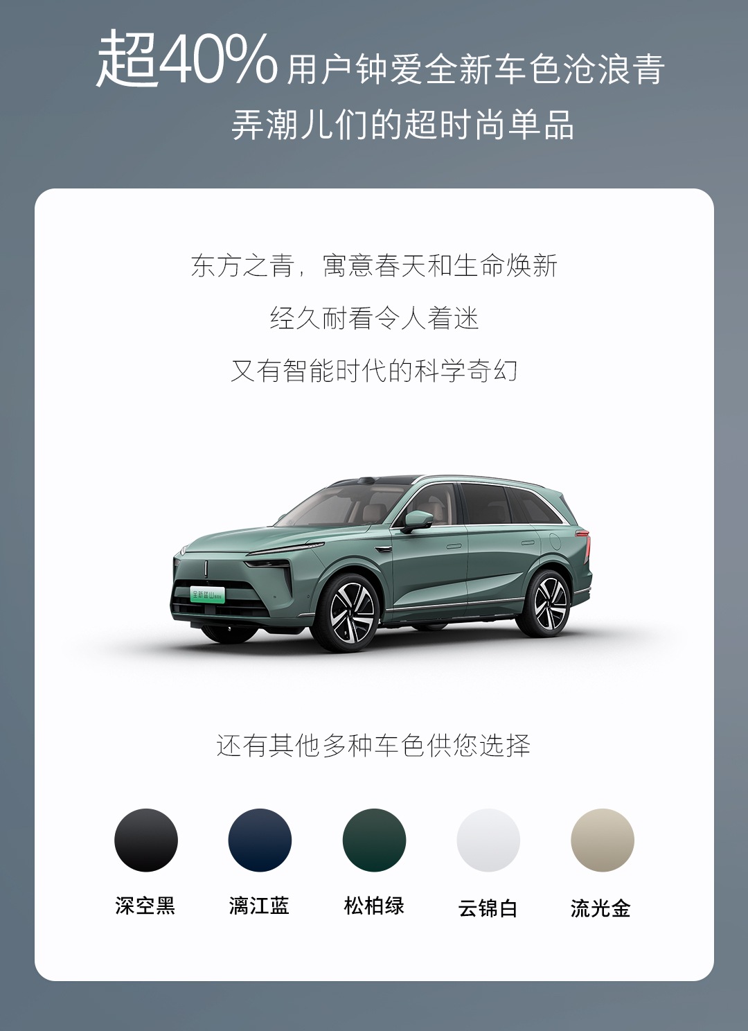 選擇MAX版本的用戶中有高達(dá)29.1%的用戶選裝了17.3英寸的后排娛樂屏,有15.5%的用戶選裝了21英寸的輪轂;Ultra用戶中也有高達(dá)39.4%的用戶選裝了21英寸的輪轂;由此可見21英寸銀灰雙色輪轂設(shè)計(jì),大大提升了車輛的運(yùn)動感與視覺沖擊力;超大后排娛樂屏能夠更好的滿足家庭出行的娛樂需求。 魏牌全新藍(lán)山不僅在智能配置上引領(lǐng)潮流,在外觀設(shè)計(jì)上同樣備受青睞。40.64%的用戶選擇全新車色“滄浪青”?!皽胬饲唷奔橙〕嗟谰扌秃@吮魂柟庹凵滹@露的青色,給人無限的美妙的想象,在大自然的饋贈下,深度融合Coffee GPT靈感設(shè)計(jì),這種獨(dú)特的藍(lán)色象征著春天的生命力,同時賦予車輛充滿未來科技感的視覺享受。