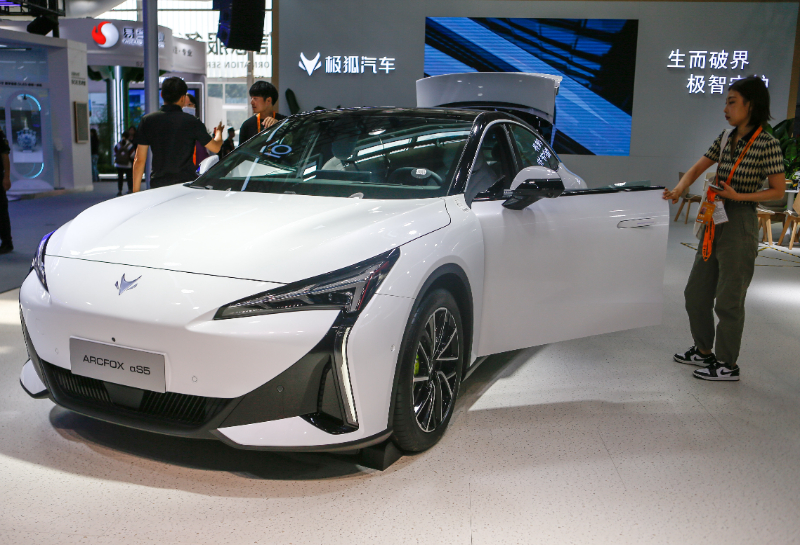 2024年9月13日,參會(huì)者在服貿(mào)會(huì)首鋼園會(huì)場參觀極狐新能源汽車。新華社記者 丁洪法 攝