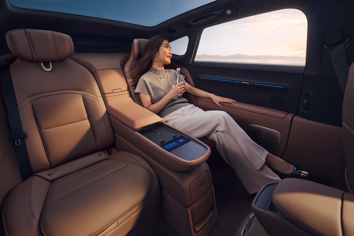 此外,新車還提供了VIP四座尊享包、納米水離子健康氧顏艙等配置,將豪華推向新高度。后排座椅支持加熱、通風、8點位按摩與電動調(diào)節(jié),配合車載智能冷暖箱與50W無線快充,無論是商務(wù)接待還是家庭出行,皆能盡享從容。納米水離子健康氧顏艙能在凈化空氣的同時,實現(xiàn)保濕護膚、柔順秀發(fā)的貼心養(yǎng)護。