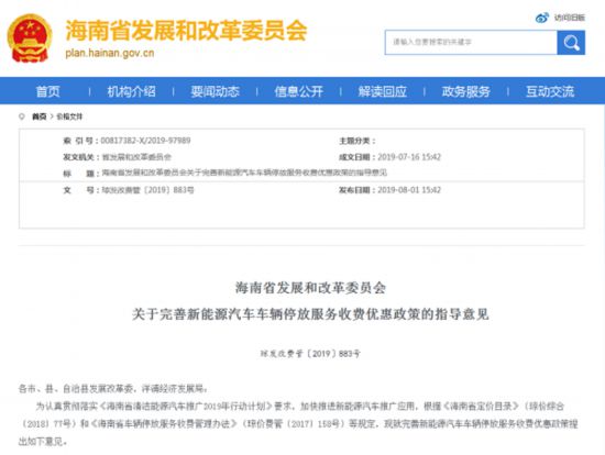 8月1日,海南省發(fā)展和改革委員會(huì)發(fā)布《關(guān)于完善新能源汽車車輛停放服務(wù)收費(fèi)優(yōu)惠政策的指導(dǎo)意見(jiàn)》(以下簡(jiǎn)稱《意見(jiàn)》),提出一系列指向清晰的指導(dǎo)意見(jiàn)。據(jù)此,海南年內(nèi)將出臺(tái)新能源汽車車輛停放服務(wù)收費(fèi)優(yōu)惠政策,不僅比燃油汽車停車收費(fèi)優(yōu)惠,而且新能源汽車在公共區(qū)域停車還將免費(fèi)。