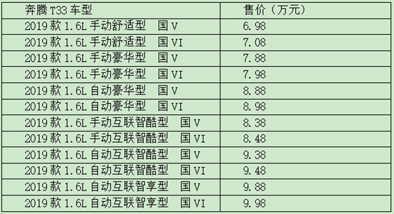 8月3日,一汽奔騰全新物聯(lián)網(wǎng)汽車T33正式上市。一汽轎車股份有限公司總經(jīng)理柳長(zhǎng)慶公布了奔騰T33的官方指導(dǎo)價(jià)。奔騰T33共計(jì)推出12款車型,售價(jià)區(qū)間為6.98-9.98萬(wàn)元。