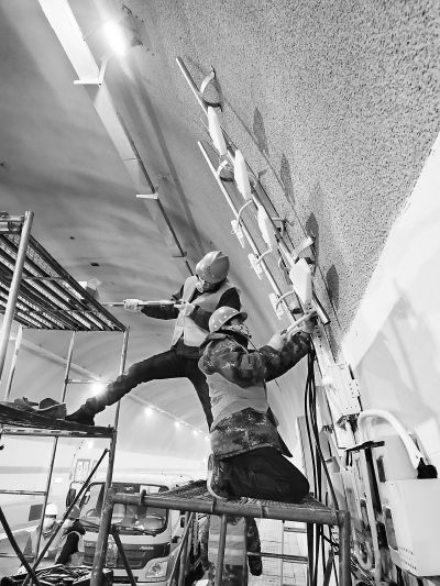 北京鐵塔公司員工在隧道內(nèi)架設(shè)裝備。北京鐵塔公司供圖