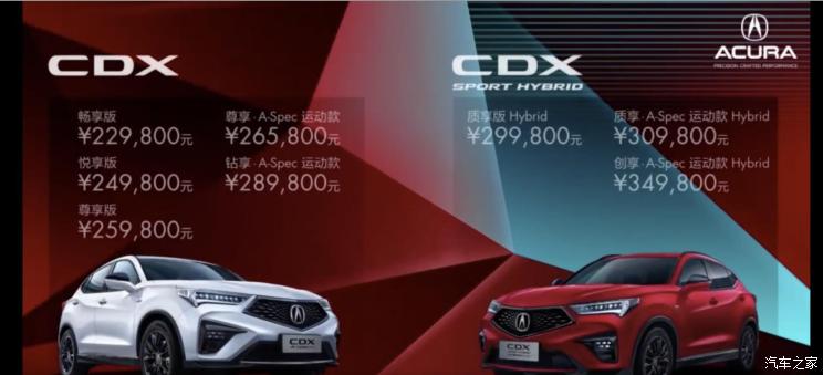 6月26日,新款廣汽謳歌CDX正式上市。新車共推出1.5T、2.0L混動兩種動力共計8款車型,指導價格區(qū)間為22.98-34.98萬元。新車主要增加A-Spec運動款車型,同時針對配置進行調(diào)整。詳情請見下表: