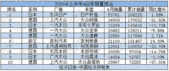 上半年,國(guó)內(nèi)A級(jí)車?yán)塾?jì)銷售227.55萬輛,同比下降27.72%,其中德系和日系分別有四款車型進(jìn)入榜單前十,呈現(xiàn)出分庭抗禮之勢(shì)。許海東分析,在經(jīng)濟(jì)困難的情況下,消費(fèi)者會(huì)更加看中低故障率和省油等優(yōu)勢(shì),進(jìn)而選擇德系、日系等品牌。