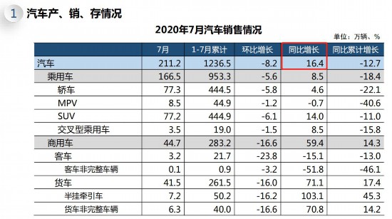 人民網(wǎng)北京8月11日電(王紫)8月11日,據(jù)中國汽車工業(yè)協(xié)會發(fā)布月度數(shù)據(jù)顯示,7月我國汽車產(chǎn)銷形勢總體穩(wěn)定,銷量達(dá)211.2萬輛,同比增長16.4%,其中商用車同比增速明顯。