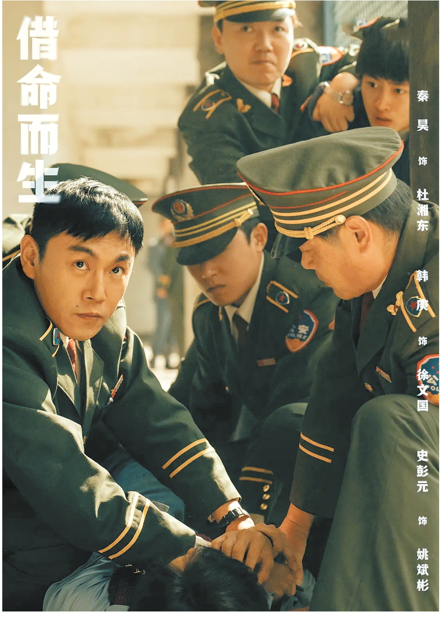 秦昊展現(xiàn)著生活化的言談舉止,但通過眼神的刻畫,來塑造杜湘東的情感起伏和復(fù)雜心態(tài)。例如他首次從押送的刑警口中聽到徐文國和姚斌彬疑犯命案時(shí),通過眼神的“微相”表演,層層揭示人物的內(nèi)心變化:從驚訝震撼,到消化信息,到心不在焉地回應(yīng)同事,再到對(duì)徐文國兄弟探究地審視,警覺地逼視,眼神逐漸凌厲,面部表情卻沒有變化。秦昊準(zhǔn)確地展現(xiàn)了靜止的外部動(dòng)作下豐富活躍的內(nèi)心世界,并符合人物應(yīng)有的厚度和深度。杜湘東對(duì)徐文國兄弟的關(guān)照,以及對(duì)追兇和糾錯(cuò)的執(zhí)著,源自于他內(nèi)心對(duì)公義的信念,這使得他20年來能夠拋卻小我的得失,為一份不知道何時(shí)能降臨的審判孤注一擲。這一人物形象闡明了《借命而生》的深層內(nèi)涵,如故事結(jié)尾所言,“我們?yōu)橹畱?zhàn)斗過的東西,會(huì)在不經(jīng)意間,在時(shí)間之河的某個(gè)角落里突然發(fā)光?!?/p>