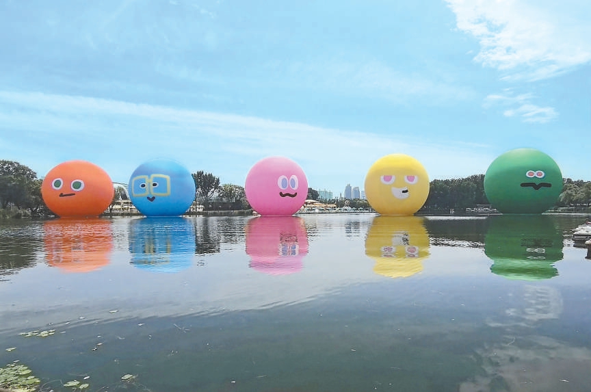 五月天大球在朝陽公園水面上。