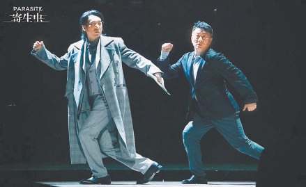 以倒敘開頭的舞臺劇《寄生蟲》延綿著一種玄幻神秘的未來感,有人看到了命運翻盤,有人看到了無間道的凄苦輪回:大難不死的基澤為了拯救墮入深淵的父親,把他父親打破的枷鎖重新綁在了自己的身上,努力成為曾經(jīng)痛恨的人。為了迎接斬殺黑暗的那道曙光,寧愿再度沉入一個漫長的苦役。