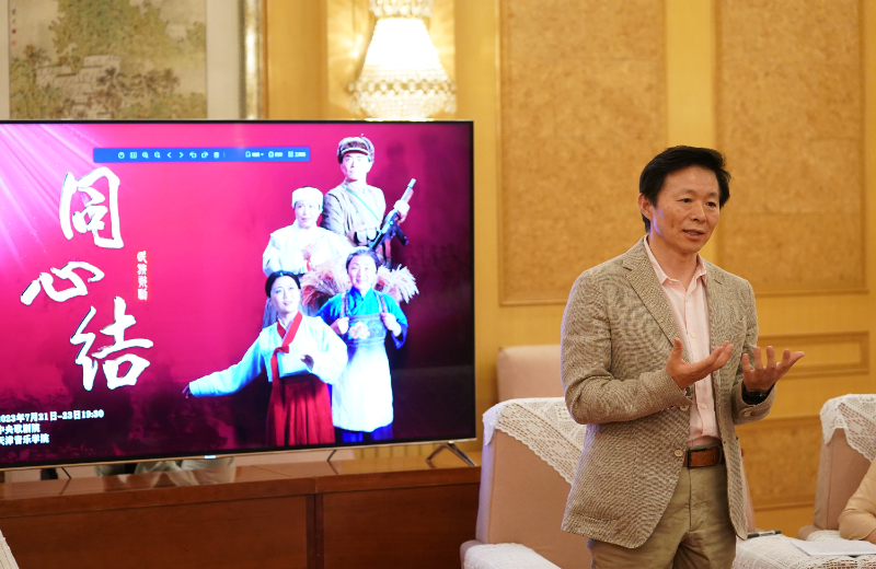 《同心結(jié)》是一部紅色題材的經(jīng)典歌劇,1981年由田川、任萍擔(dān)任編劇,黃慶和、王云之、劉易民作曲,原中國人民解放軍總政治部歌劇團(tuán)創(chuàng)作首演。2023年是抗美援朝戰(zhàn)爭勝利70周年,天津音樂學(xué)院進(jìn)行了創(chuàng)作復(fù)排。此番上演的《同心結(jié)》是音樂會(huì)版歌劇,樂隊(duì)被設(shè)置在舞臺(tái)之上,80人的青年交響樂團(tuán)和110人的青年合唱團(tuán),全部由天津音樂學(xué)院師生班底組成。