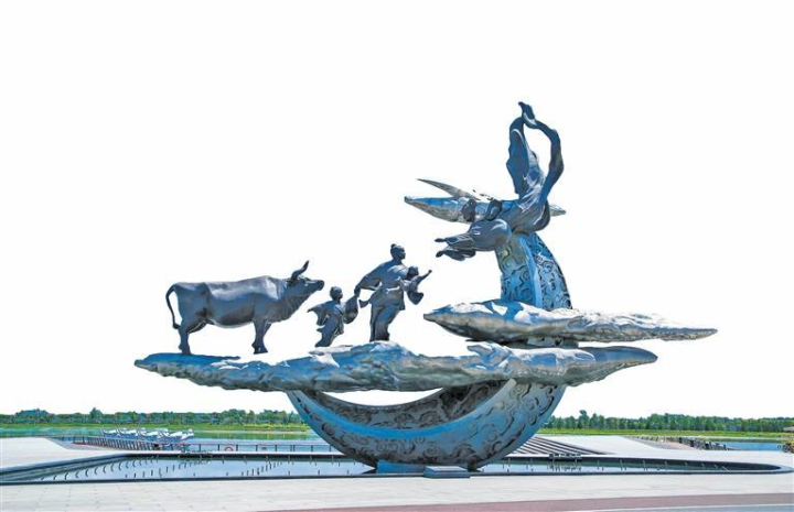 昆明池·七夕公園內(nèi)的藝術(shù)裝置鵲橋仙。 西安昆明池景區(qū)供圖
