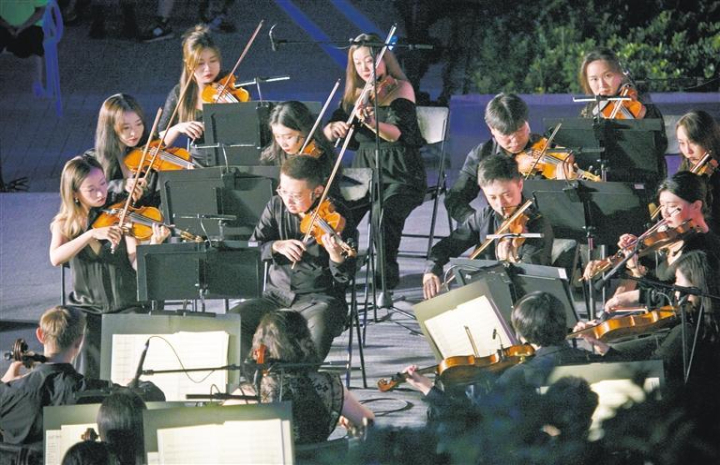 8月22日,昆明池畔,隨著歌曲《一生所愛》的旋律響起,由西安交響樂團、西安交響樂團合唱團帶來的“因為愛你——七夕主題交響樂之夜”活動拉開帷幕。七夕湖上波光粼粼,鵲橋凌波含情脈脈。在修建之初就被融入愛情主題的昆明池·七夕公園,在極具浪漫色彩的古韻與美景中,通過交響樂與經(jīng)典電影畫面的視聽結(jié)合形式,線上線下同步向觀眾展現(xiàn)亙古不變的美好愛情和永恒浪漫。